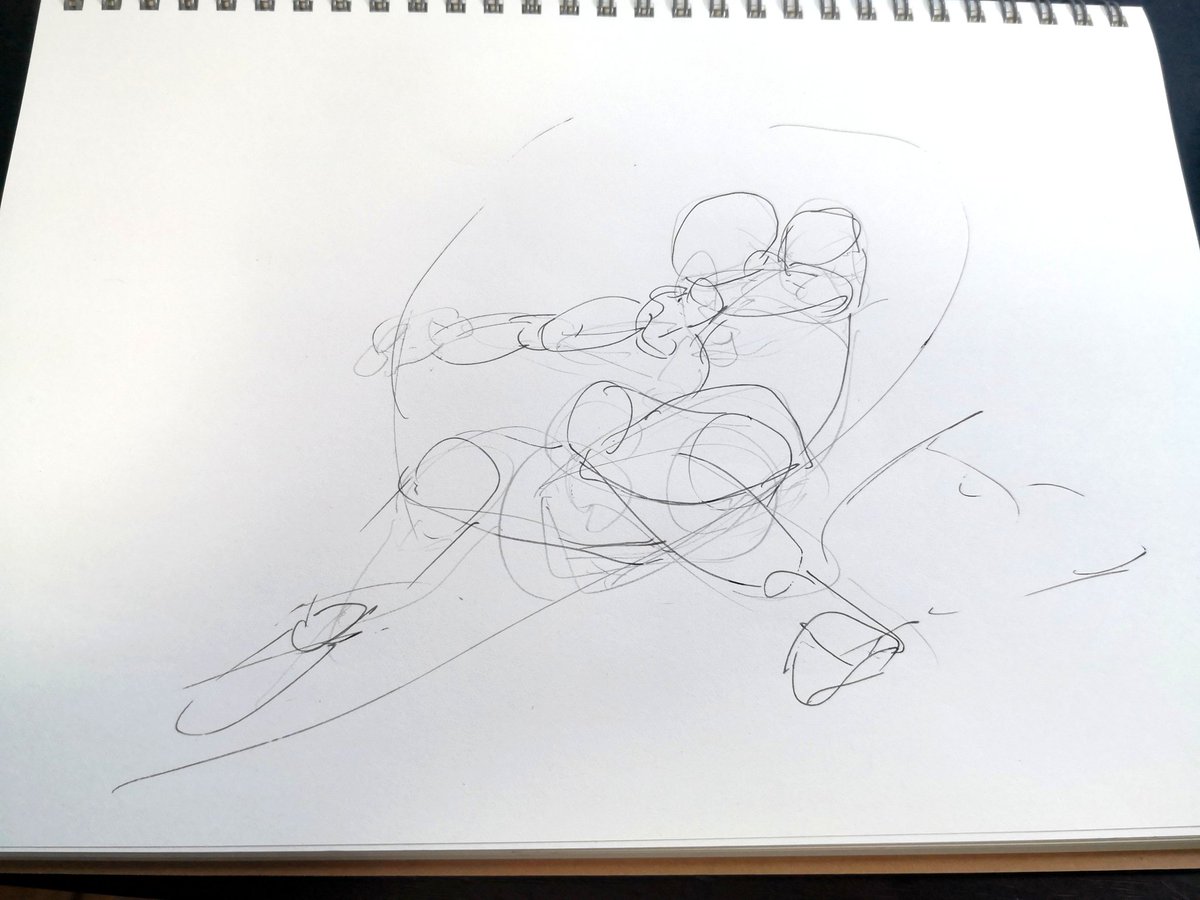 ちょっと前のやつだけど、絵の流れを決めてから描いていくやり方の解説用スケッチ。構図に困ったら取り敢えず流れだけ描いてみる✏️ #イラスト #お絵描き