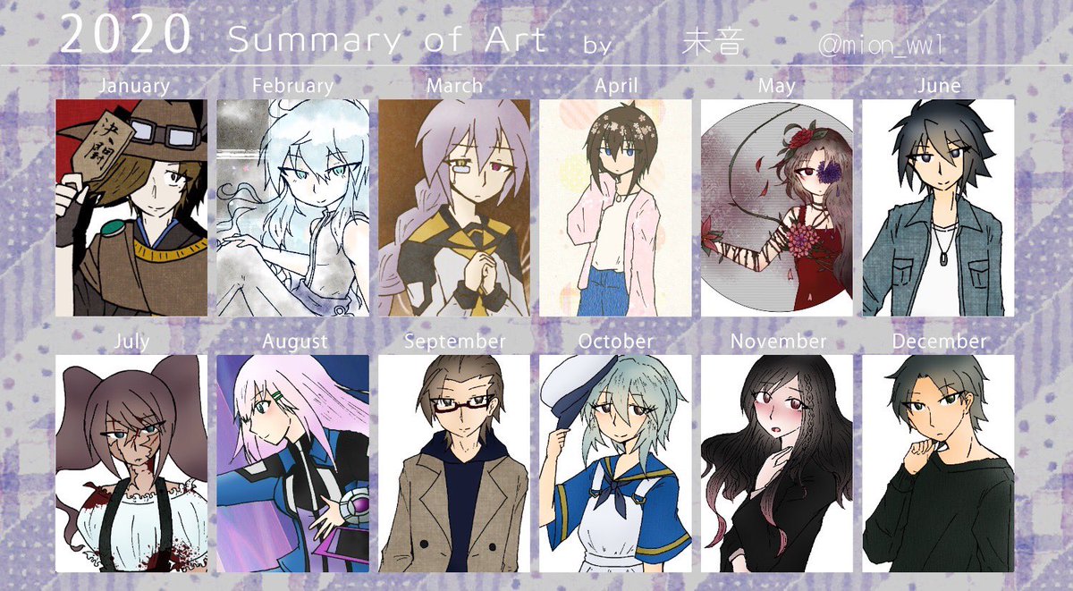 1 6 テンプレお借りしました!1月と8月はよそのこです 後半立ち絵ばっかりだあ #artsummary2020 20/12/13 18:02