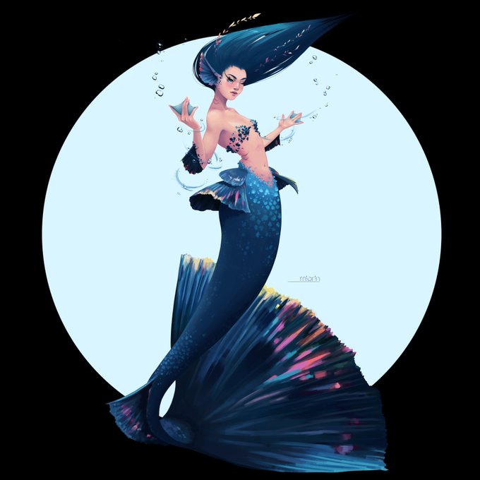 The second fish 💙 It was much easier to work here, dark colors are a salvation for the eyes 😅 It was my first time drawing humanization (fishes) and I'm happy with the result. I'll definitely come back to this topic, but later с: #mermay #mermaiddesign #2dart #humanization