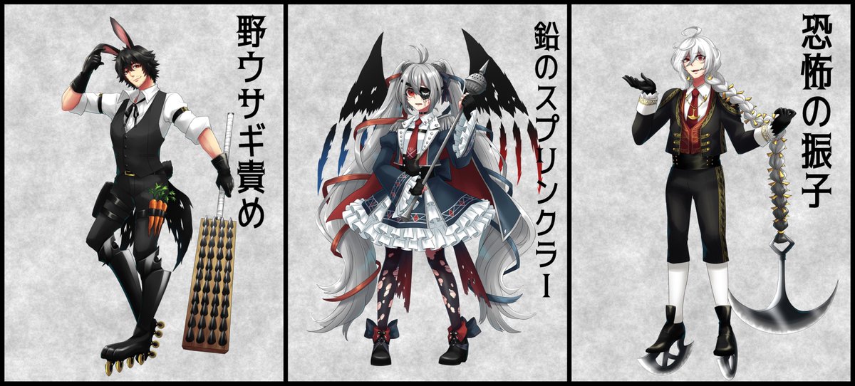 #うちの自慢の擬人化でも見て行って ワー‼️便乗させて頂きます‼️ 当方処刑具・拷問具の擬人化をやっております。それ以外にも色々なジャンルの擬人化があるので、よかったら画像欄覗いてってください