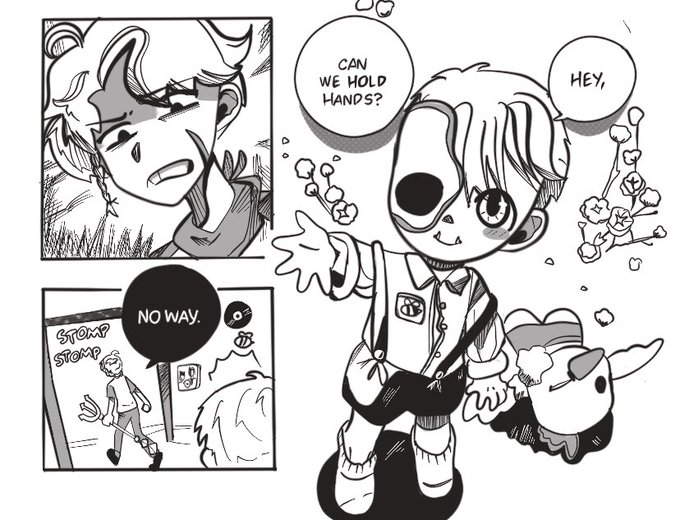 he has his chicken plushie ☹️ anyways tl have this redraw of a tbhk panel but as michael and tommy!!! - rts are super cool :D #michaelfanart #tommyinnitfanart