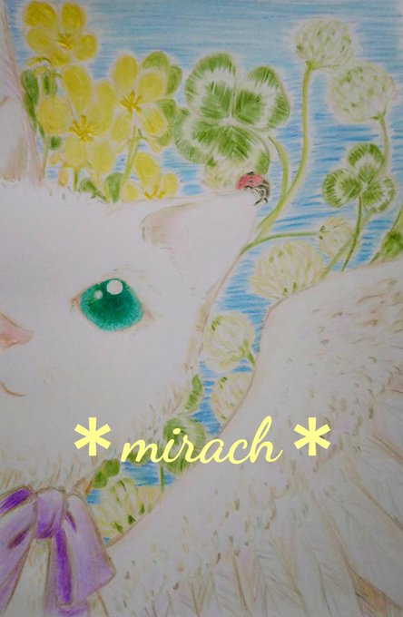 0 6 先日、翼ブローチを購入して頂いた方に描いて同封したイラスト。 #オリジナルイラスト #猫 #春 #色鉛筆画 21/03/18 11:43