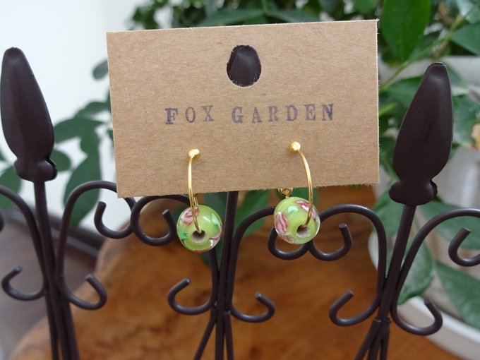 ガラス(トンボ玉)お花柄のフープピアス★no.1924 気になる方はDMくださいねぇ♪ #foxgarden2010 #羊毛 #ハンドメイド #手芸 #羊毛フェルト #かわいい #kawaii #creema #minne #mercari #販売中 #ピアス #トンボ玉 #ガラス #フープピアス #花