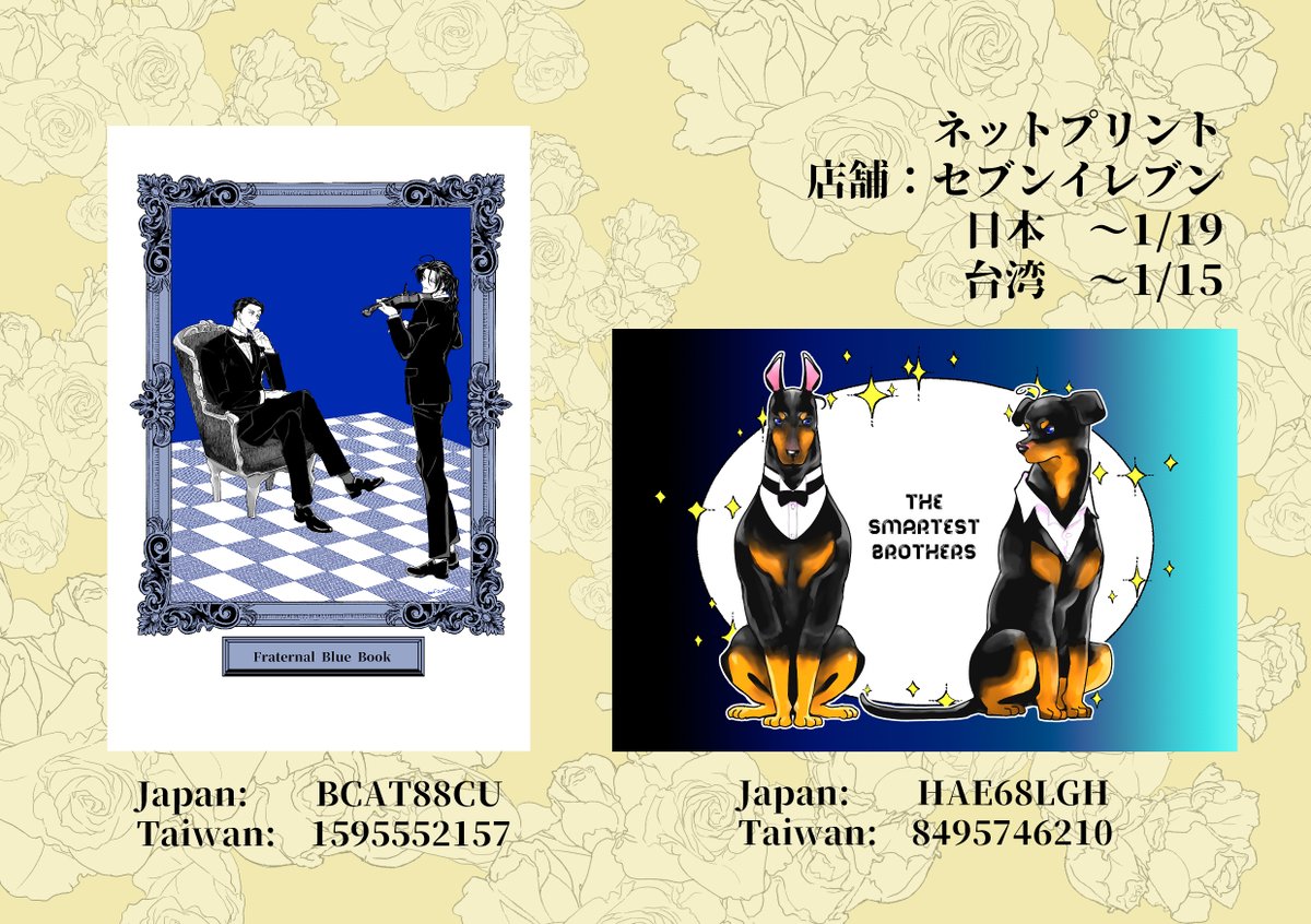 27 53 ご要望がありましたのでホム兄弟アンソロ告知イラストのポストカードをネットプリントに再アップしました。台湾のセブンネットプリントにも再アップしてますのでよろしければご利用ください。 追加でホム犬兄弟トートに使用したイラストもポストカードにしました。 23/01/12 21:36