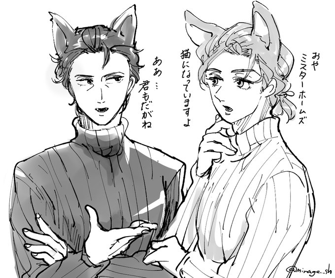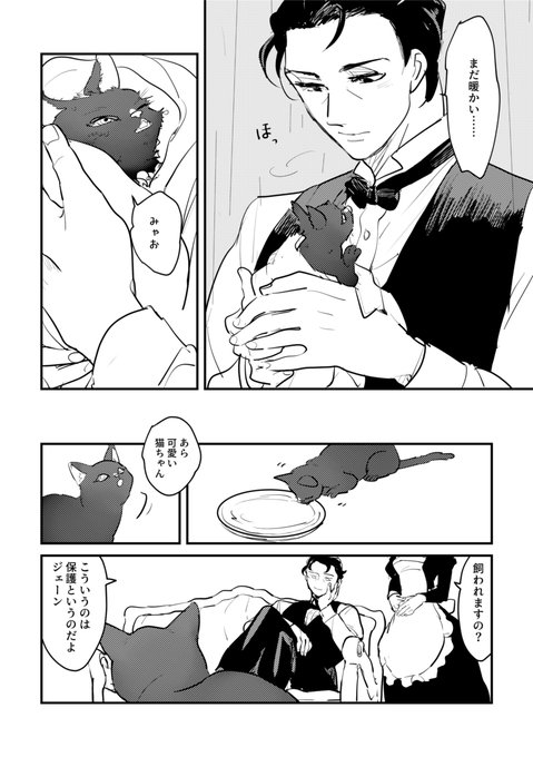63 256 猫の日なので、いつ仕上がるかわかんない猫とマイ兄さんの本の一幕だけ描きました。捏造ジェーンさんを沢山描く予定。 23/02/22 21:48