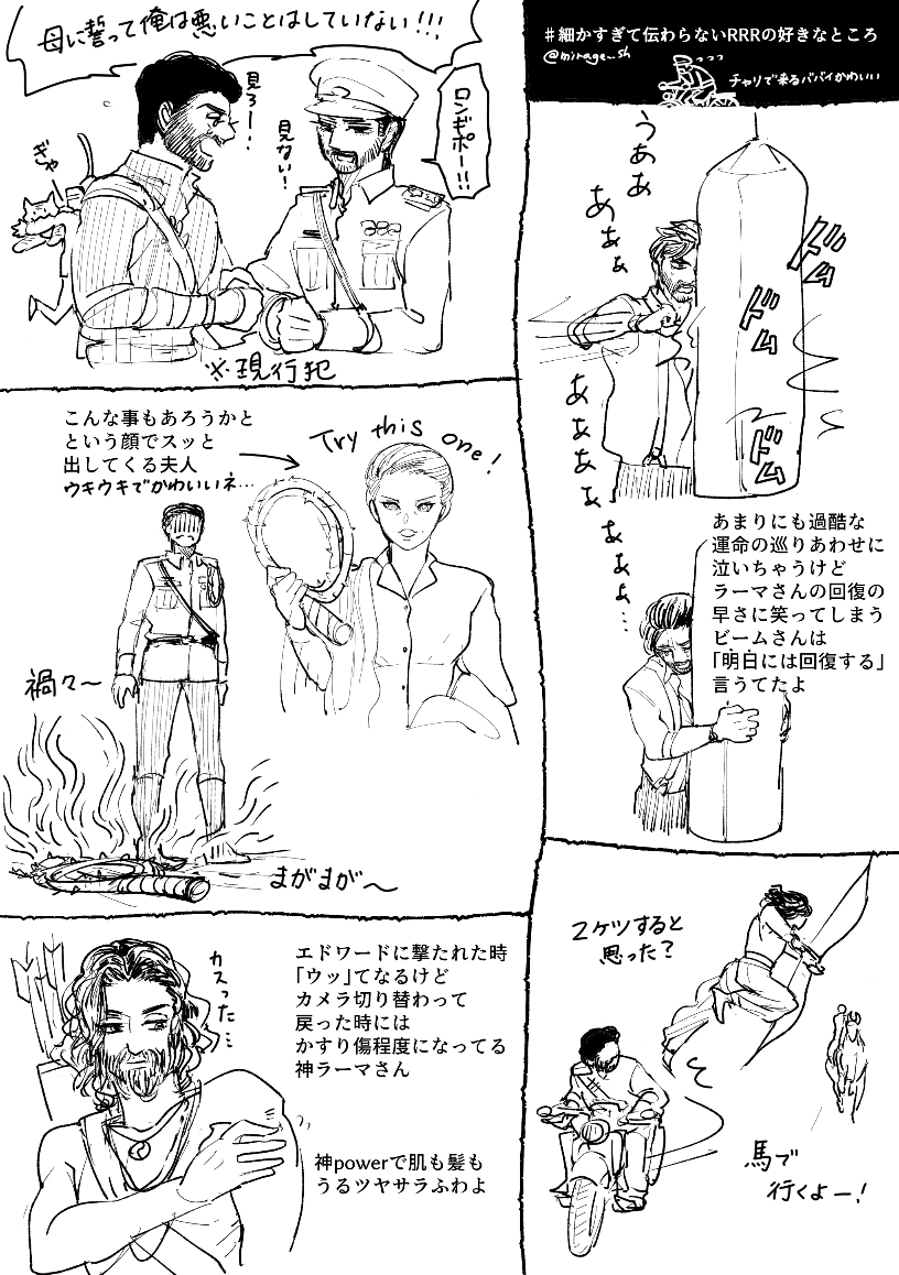 これ以上ないくらい真剣な顔で難解ジェスチャー繰り出すラーマさん愛しいし、あれで指示通り動けるビームさんなにもんだよになっちゃうし、ラストバトルで火炎バイクドーンしてボーンの指示がスッと通ることを納得させる伏線でもあるの天才ですわ。