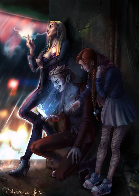 -COMMISSIONS OPEN- Ladies night out watching their territory. #Vampire #vamily #WoD #art #illustration #ttrpg #roleplay #roleplayer
