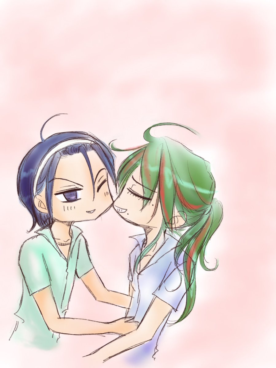 2 22 #東巻のとうまキッス 過去絵ですが、唯一1枚だけ描いてたので💜💚 多分チッスしてる!ハズ!! 判定甘めでお願いします💦 20/02/03 22:53