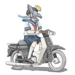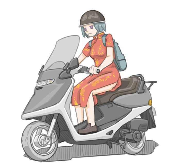 昨日の嵐で制服が濡れたのでチャイナ服で部活に向かう女子です。 (ホンダ ブロード50) #バイクJK #イラスト