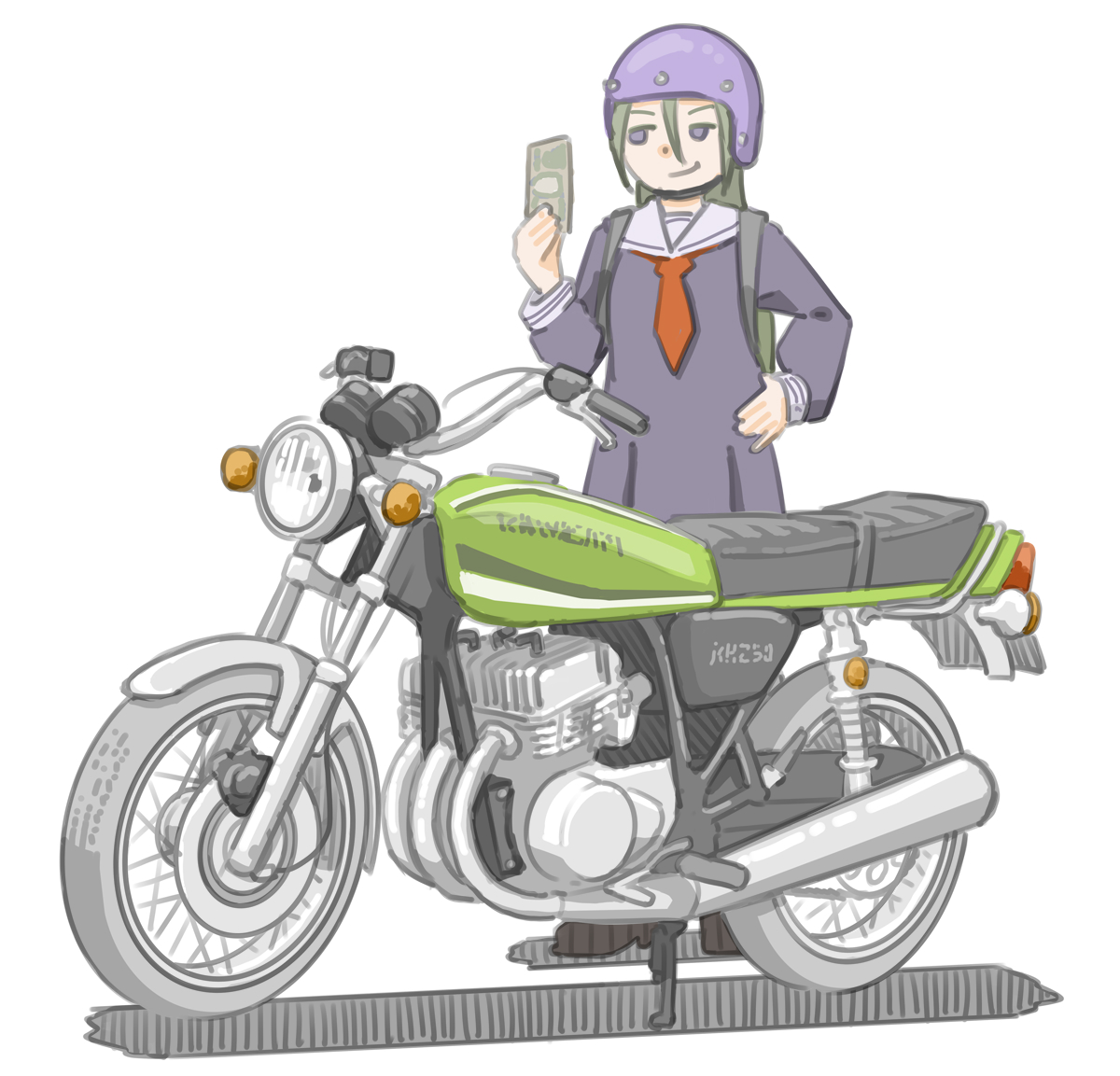 これからお菓子詰め放題1000円に向かうので気合を入れる女子です。 (カワサキ KH250) 【再掲載】 #バイクJK #バイク女子
