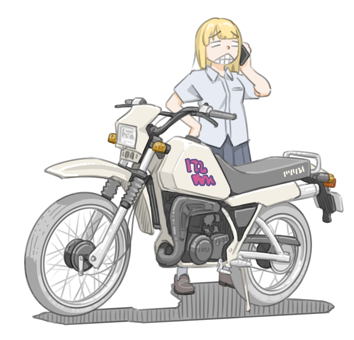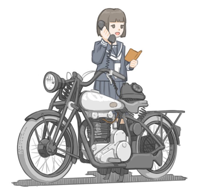 21 144 週末のツーリングの予定を電話で連絡するアナログ系女子です。 (Praga (1932)) 【再掲載】 #バイクJK #イラスト 23/08/20 12:00