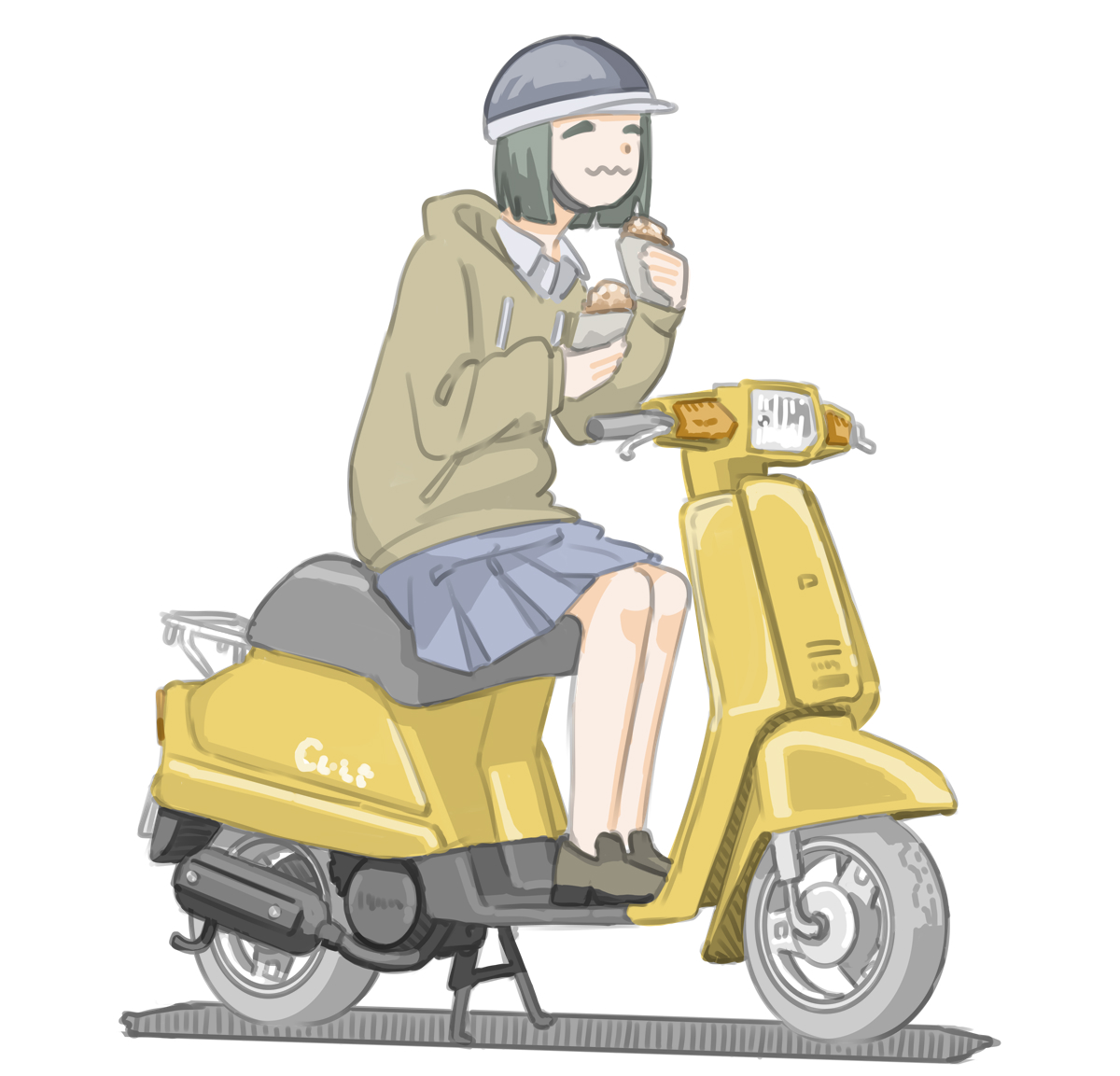 揚げたてコロッケトラップに見事に引っかかった女子です。 (ヤマハ キュート) 【再掲載】 #バイクJK #バイク女子
