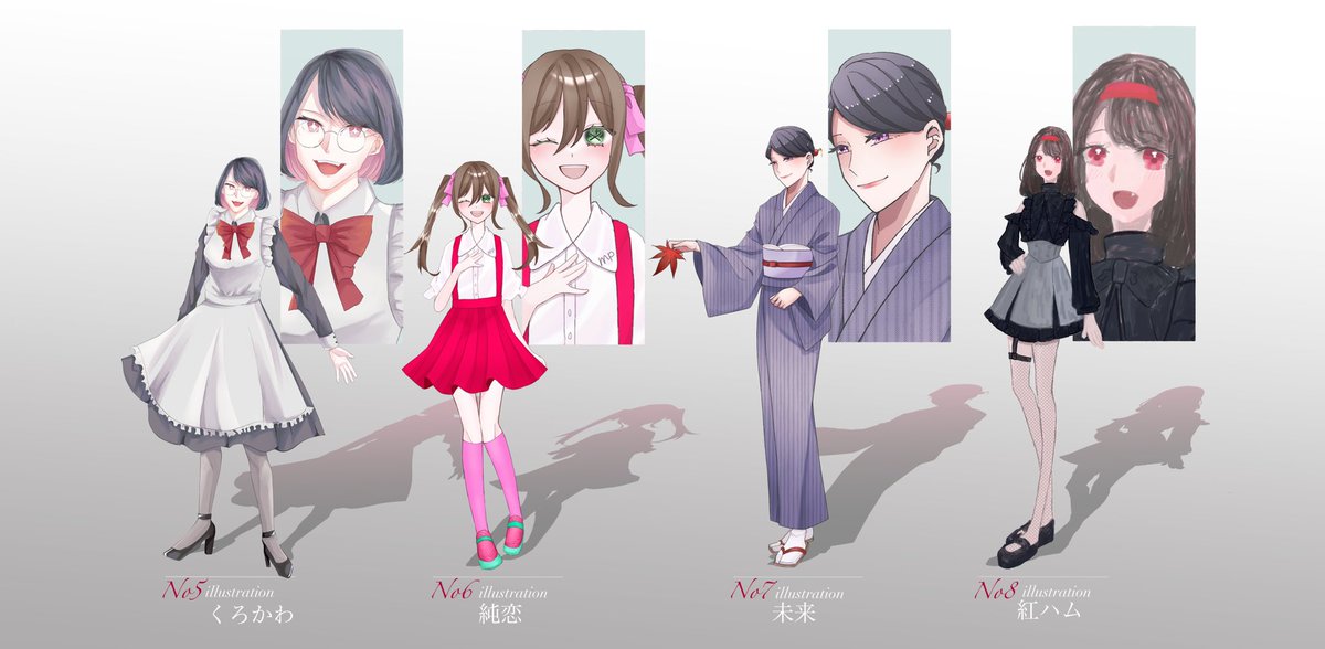 #くろかわ版擬態デザイン2 くろかわさん【@ krkw_Create】主催の擬態デザに参加させて頂きました! 私はNo7の女の子を描かせて頂きました、着物美女~!❤️ 素敵な女の子ばっかりで嬉しい! リプにアンケートを繋げております、私のデザインした女の子はどこでしょう!