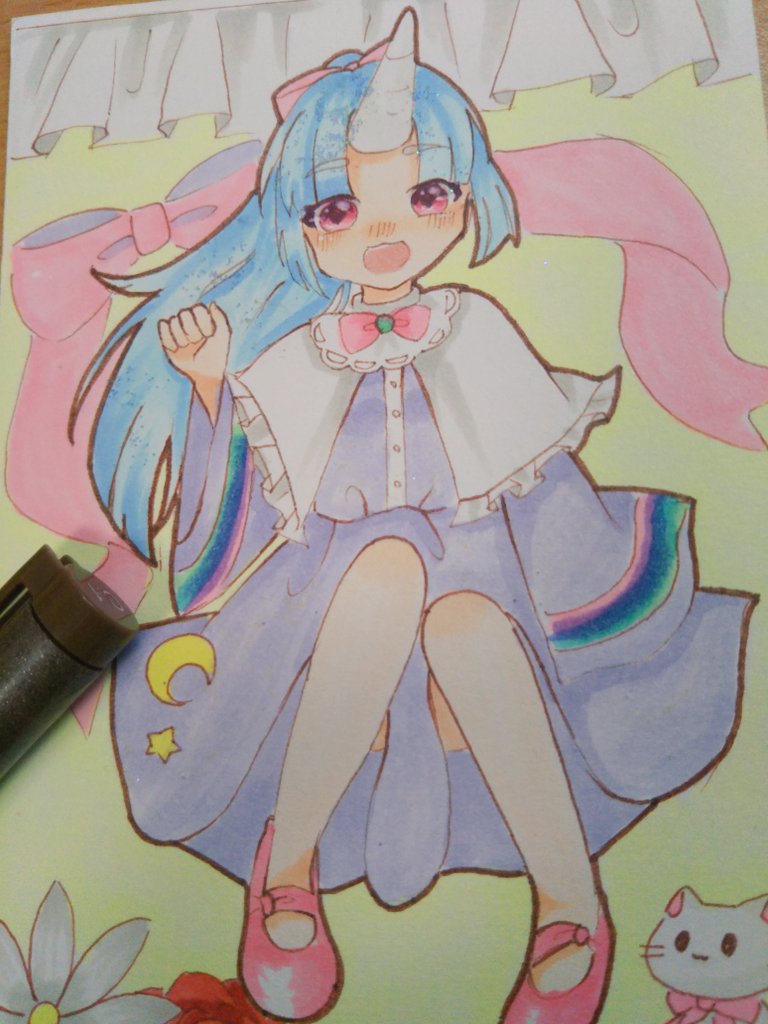 ♡.*・゚ユニコーンの女の子.゚・*.♡ #コピック #ユニコーン #中学生お絵かきマンさんと繋がりたい