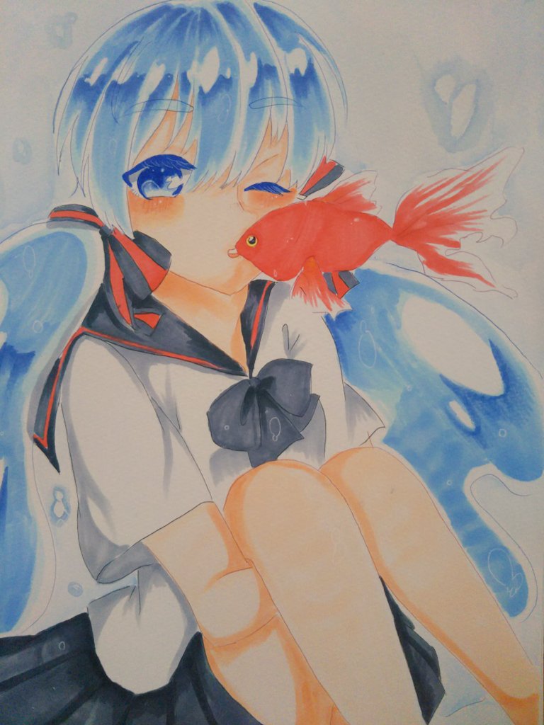 2 14 ボトルミクちゃん•*¨*•.¸¸☆*・゚ #コピック #中学生お絵描きマンさんと繋がりたい #初音ミク #ボトルミク 19/08/20 13:25