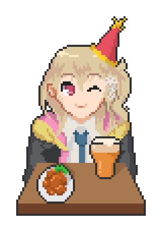 ごめん、昨日寝ちゃった… お詫びに、このドット絵をプレゼントします… (アーカイブ見ながら描いていました) #Ray_art