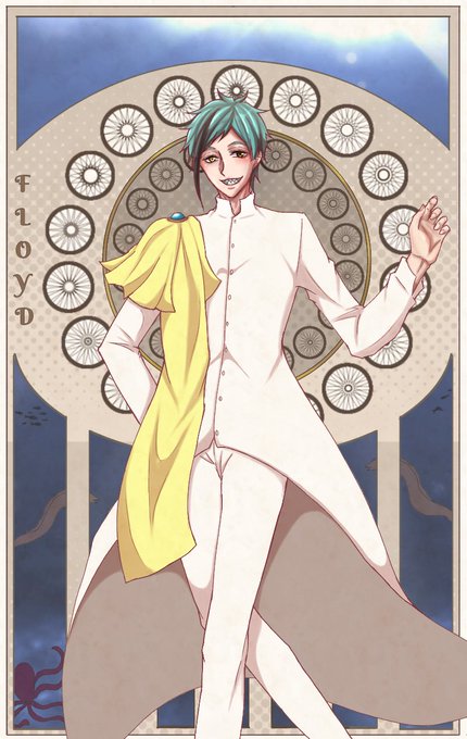 #第3回twstミュシャ企画 #twstファンアート 前回から引き続き素敵な企画に参加させていただきました♡ 今回はフロイドを! 上記のタグから素敵な作品を見ることができるのでぜひ! 素敵な企画に参加させていただき、ありがとうございます☆