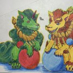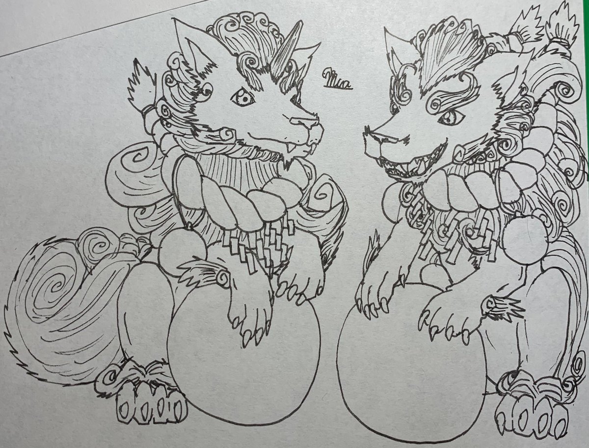 2 52 #イラスト 自作モンスター。神社の狛犬的な感じ。 ポーズ色塗り練習。 20/07/16 17:48