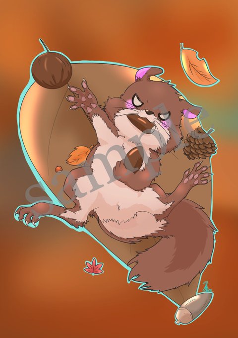 食欲のリス 秋といえばなイラストを描きたくて!オリジナルキャラクターです ポートフォリオの一部です🐿 #イラスト