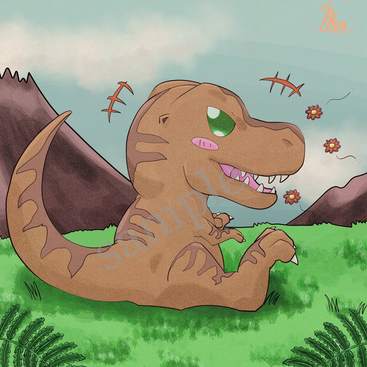 恐竜のほのぼの🌼 お花好きな恐竜ティラノサウルスです🦖 ふわふわっとあったかいオリジナルイラストです✨ #イラスト