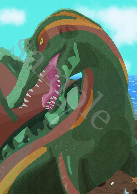 4 53 ヘッダー用なんてさ、見ないよね?でも名前、アカウント、の次に大事だと思って!! みらエルイノシシ、恐竜と海で泳ぐ をヘッダー用に描きました! #イラスト 22/10/01 18:05