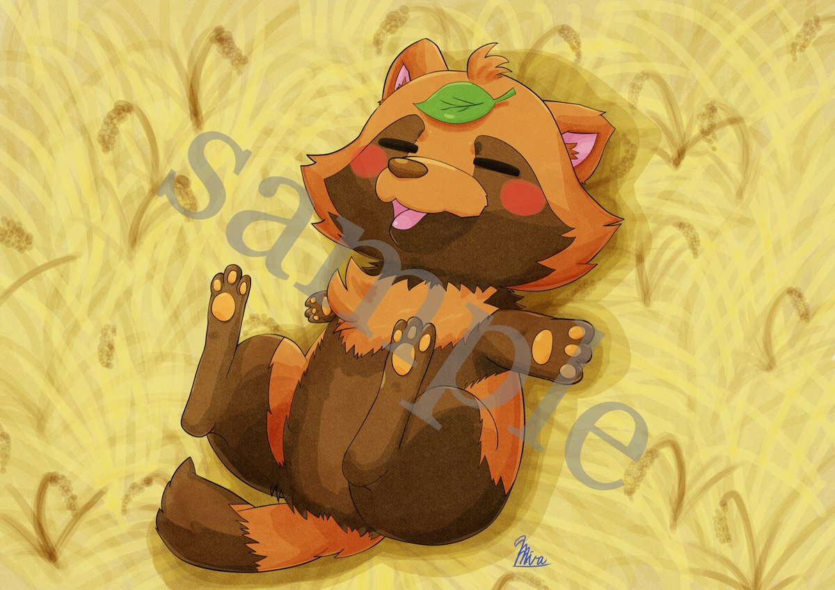「昼寝は最高」 オリジナルキャラクターイラストの、たぬき君です! たぬきと考えて葉っぱ、って思った私でした! 人に変身してたら、元の姿でモフりたいなぁ! #イラスト