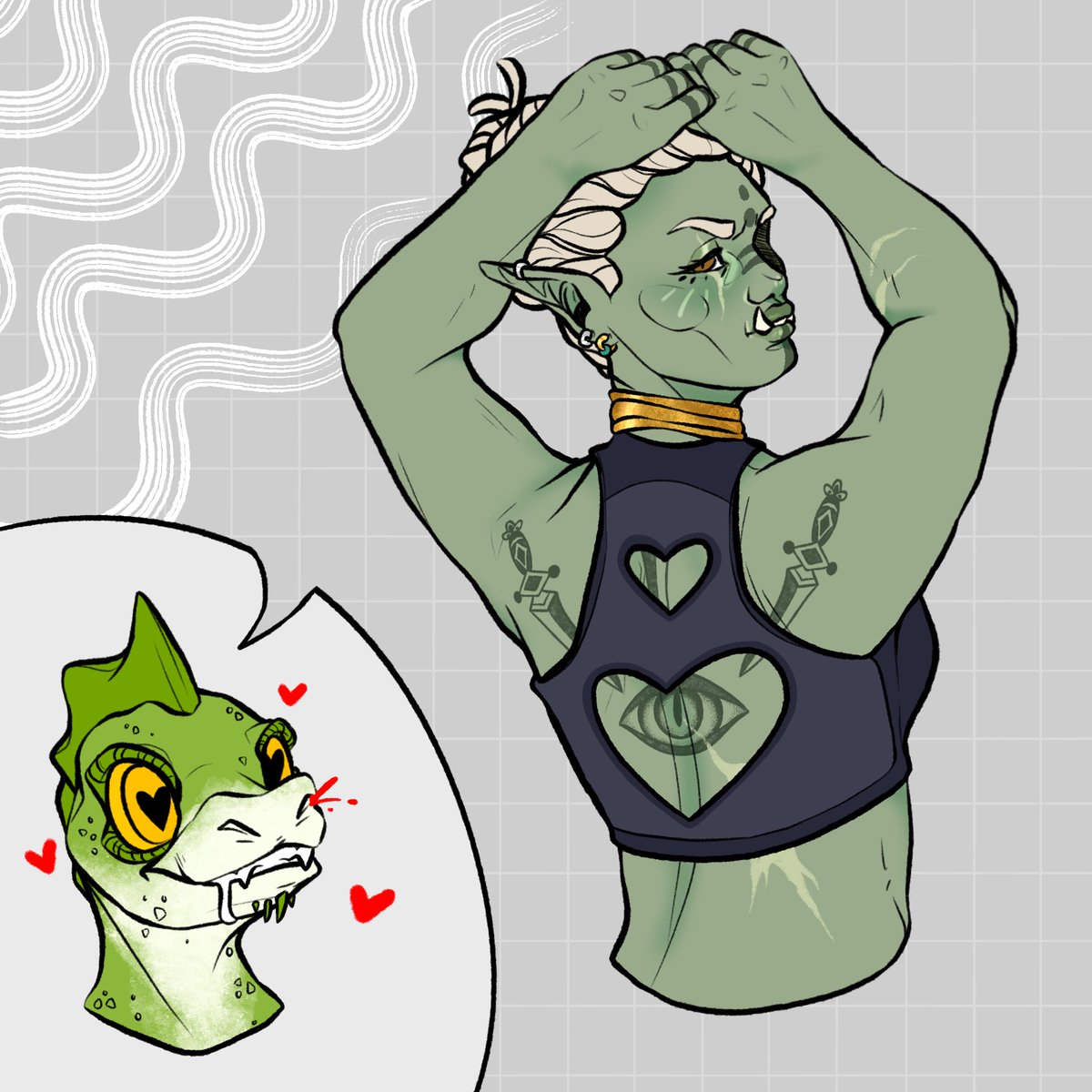 when you’re a 4’ lizard with a 6’ half-orc gf / #dnd #dndart #procreate #dungeonsanddragons #artistsontwitter #commissionsopen