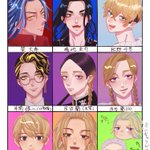 9 29 #ローディング画面に出た4人を描く #ツイステファンアート 👑 ♦️ ⚔️ 🦇 お顔気に入らなかったのでちょっと直しました、再掲です🙏 20/07/21 18:29