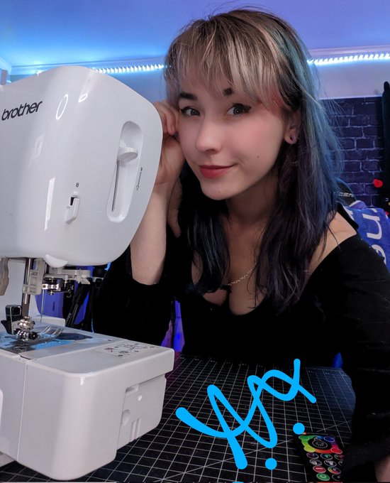 Meet my #vtuber, Stitchlet! She is my lovely sewing assistant and takes over streaming when I don't want my face to be on camera (which has been often lately). If you're interested in keeping up with my other self you can follow @StitchletVT ✂️❤️🩸 #stitchillust #VTuberUprising