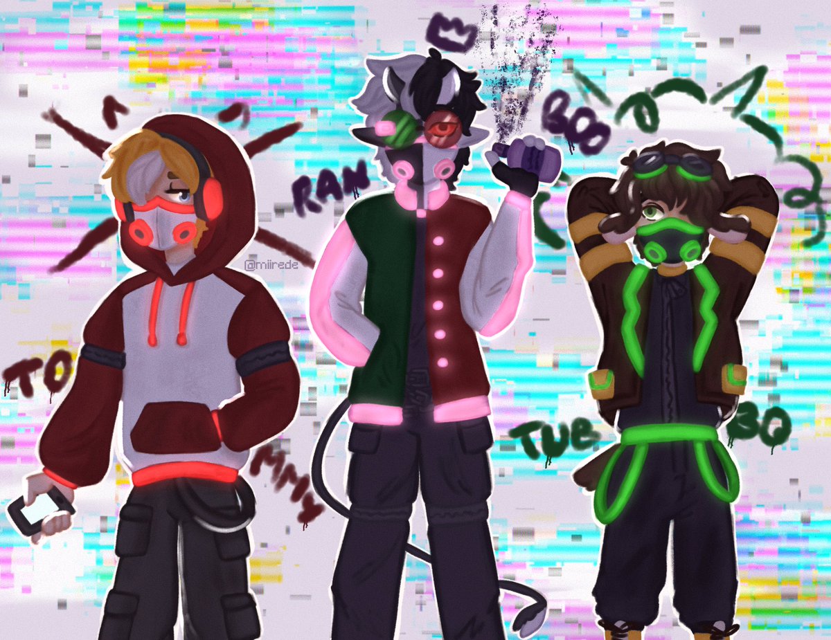 cyberpunk benchtrio the beloveds🎈✨ [rts appreciated a lot!] #doki7k #benchtriofanart #ranboofanart #tubbofanart #tommyinnitfanart