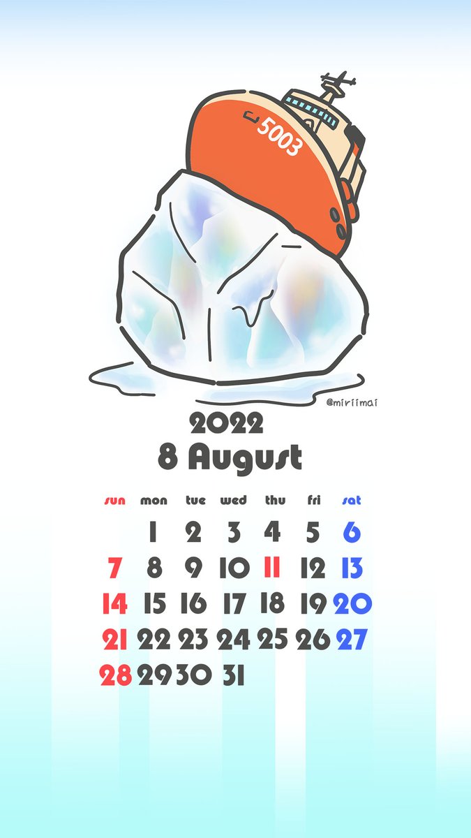 8月の #自衛隊カレンダー壁紙 作りました。今月は南極観測船か砕氷艦かで人を分かつしらせです(笑) おおきなロックアイスをラミングしながら割ってくれたらかわいいな、と思って描きました。スマホの壁紙としてお使い下さい(加工・商用利用不可)少しでも涼やかな気分になってもらえたら幸いです。