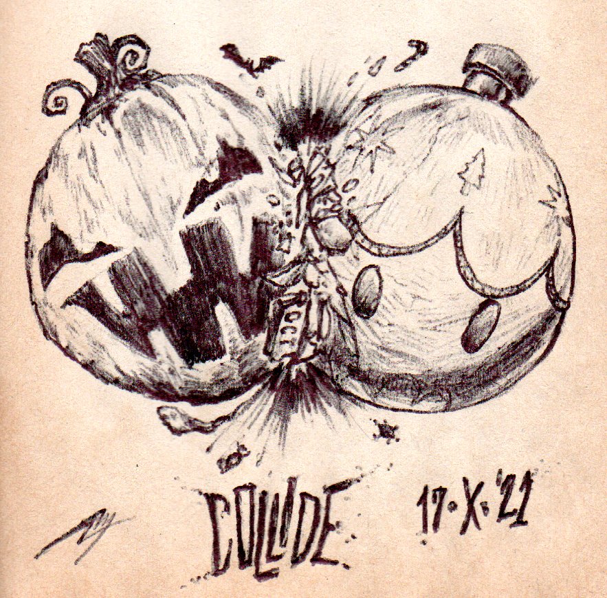 #Inktober día 17: #Choque Octubre: ¡el mes en que colisionan Halloween y la Navidad! 🎃💥🎄 #Inktober2021 #ilustración #halloween #navidad #colisión #collide #christmas #holidays #crash #illustration