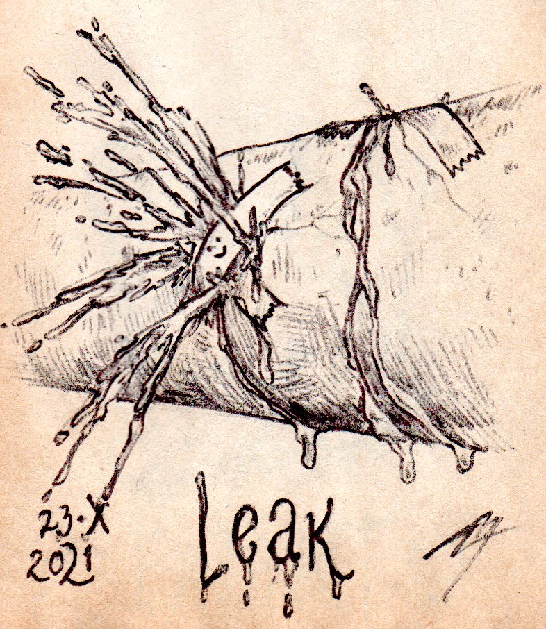 #Inktober día 23: #fuga "Eso aguanta" 🙃💦 #Inktober2021 #ilustración #gotear #leak #escape #open #illustration