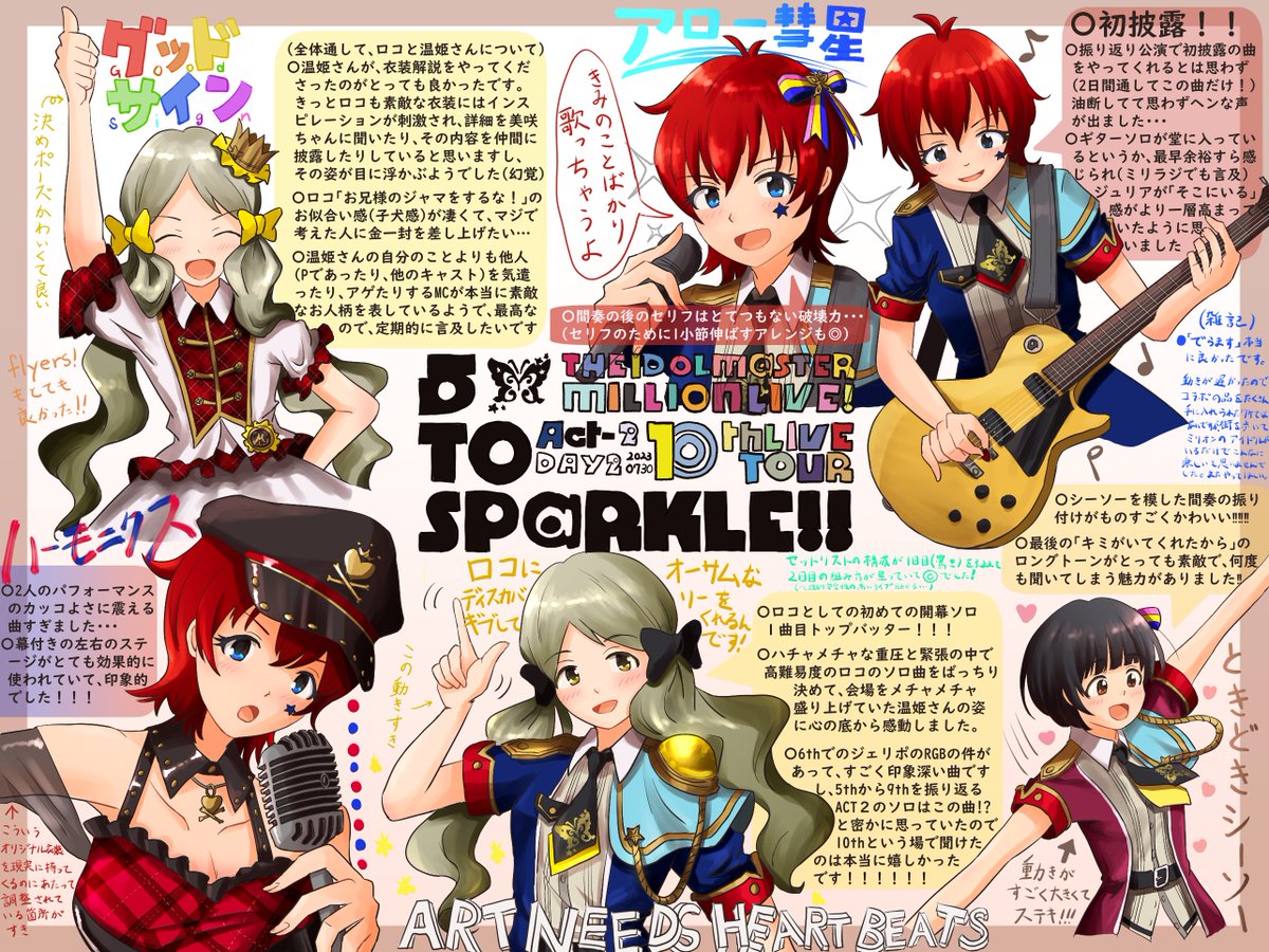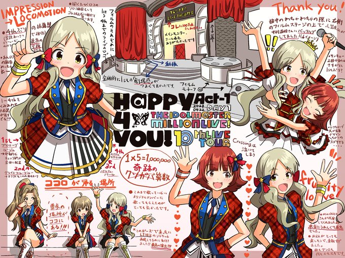 ロコ中心になりましたミリオン10thライブAct1、Day1感想イラストです。 この他、Day after "yesterday"で「昨日願って」が歌えたこと、楽しすぎたエタハモ、まさかのUNMEIライブ、4thで心に刻まれた恋の音色ラインなど、聞きたかった曲が聴けて本当にhappyでした #imas_ml_10th #ml_10th_act1_day1