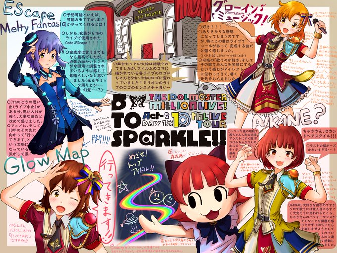 ミリオン10thライブAct2の1日目感想イラストを描きました! 9thのリミックスが好きだったのでメドレーパートが猛烈に最高でした!(出られなかった方のユニット中心なのも◎)こんなに満足感あるのにシーズン曲全くなかったんですよね!曲の層が厚すぎる! #imas_ml_10th #imas_ml_10th_act2_day1