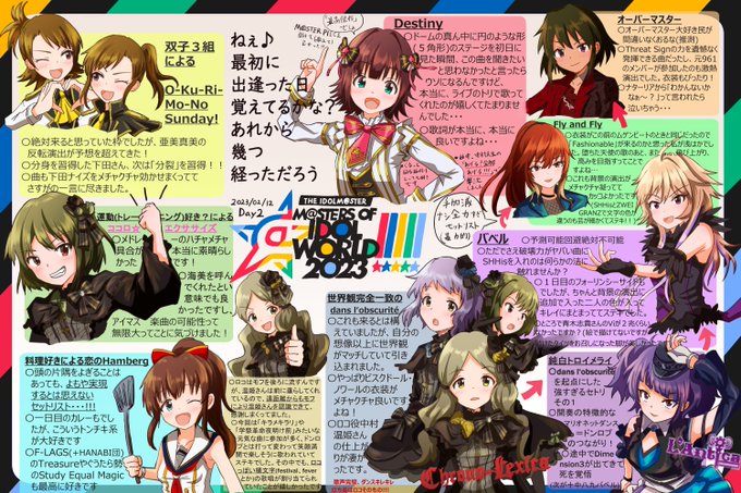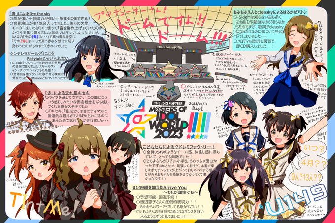 MOIW20231日目感想イラスト描きました! 「予想できる範疇で、楽しみにしてたコラボ」と「予想無理だからこその驚きと嬉しさと楽しさ」がみっちり詰まっていて、全く息つく暇のない最高に素晴らしいライブでした!!本当に楽しかったです!!! #アイマスMOIW2023_day1 #祝アイマス単独東京ドーム