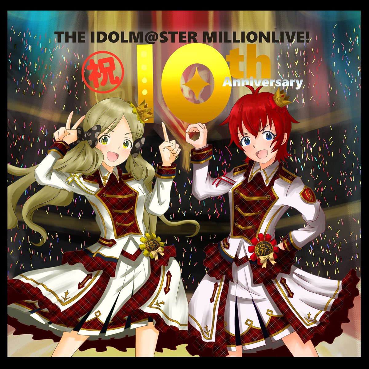 ロコとジュリア中心に、ミリオン10thライブAct2の2日目感想イラストを描きました! Act1~Act2は、この先への何度目かの「スタート」なんだと思うんですけど、これまで追ってきた人はもちろん、新しい方も楽しめるライブに!という意識がすごく強くて👍 #imas_ml_10th #imas_ml_10th_act2_day2