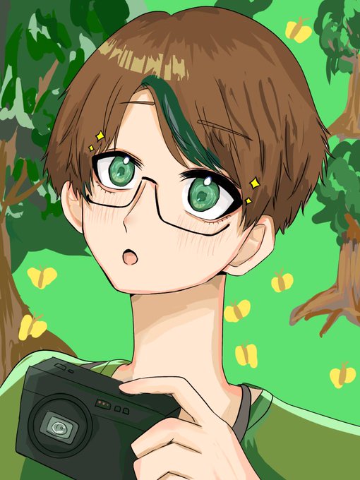 #彬作描けたよ カメラに目覚めるすぎさくショタ 周りにいる蝶はリスナーです👍🏻💕