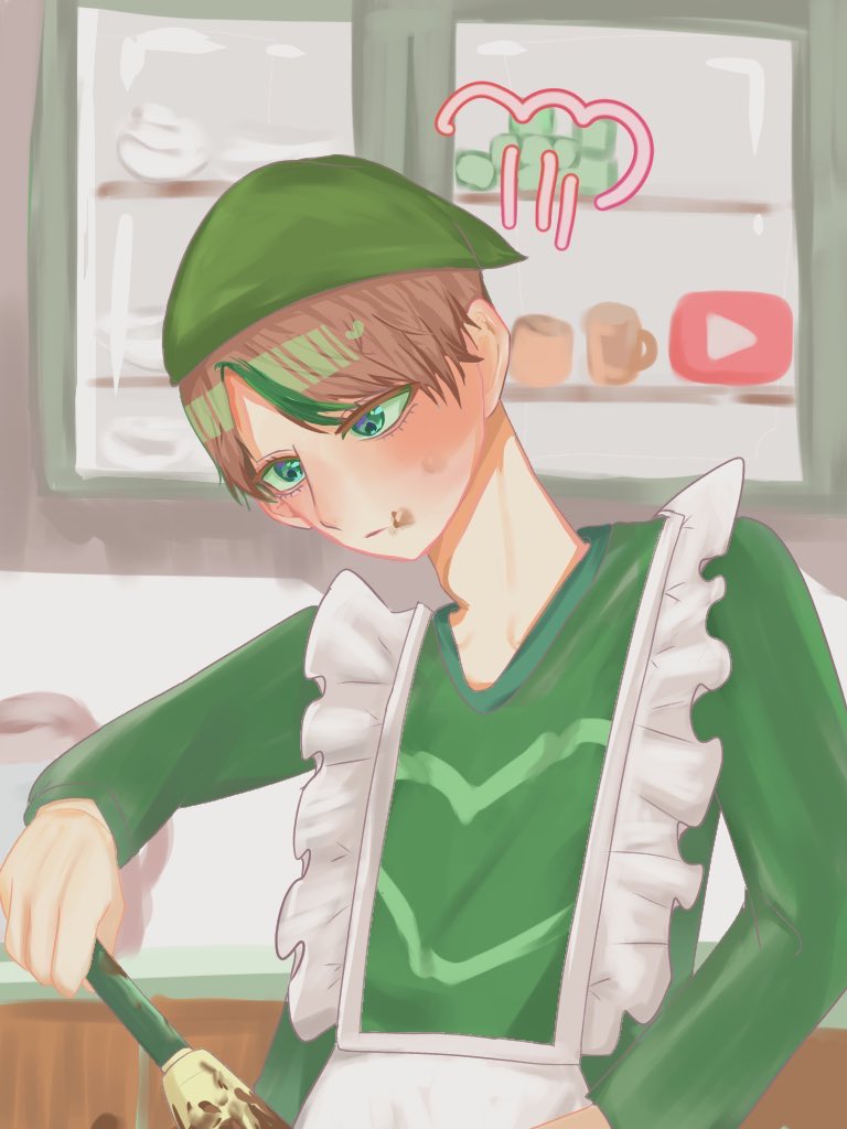 #彬作描けたよ 遅れたバレンタイン制作中の社長 注:メガネ無いです!