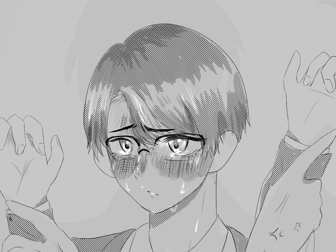 #彬作描けたよ 攻めが女の人と歩いてるのを見て嫉妬して裏で泣いてたけど攻めに見つかって何で泣いてんのって怒られて欲しい。