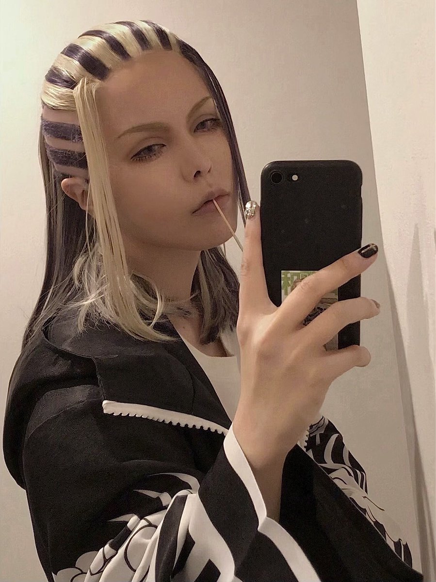 70 689 evergreenあたりのHYDEさんメイク。 眉の色抜いた🤍🥀 21/11/18 19:38