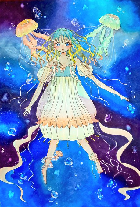 0 33 クラゲモチーフ wip #イラスト #イラスト好きな人と繋がりたい #illustration #絵描きさんと繋がりたい #wip 22/06/07 18:59