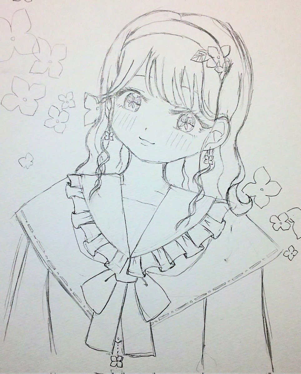 紫陽花に溶けて(下描き) #イラスト #イラスト好きさんと繋がりたい #illustration #絵描きさんと繋がりたい