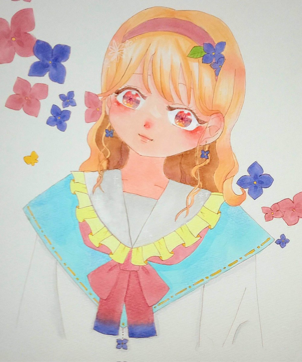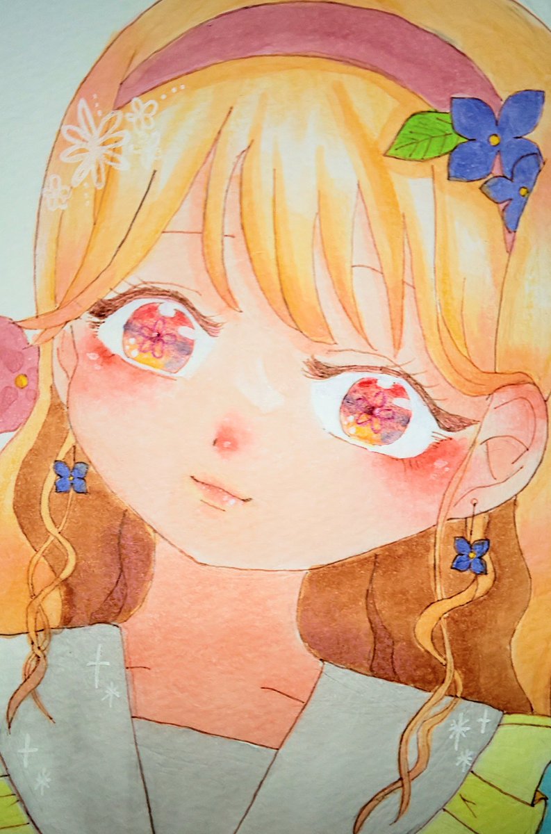 紫陽花に溶けて さっき投稿したイラストの顔アップです✨❤全体像も是非見てください😊 #イラスト好きさんと繋がりたい #イラスト #絵描きさんと繋がたい #illustration