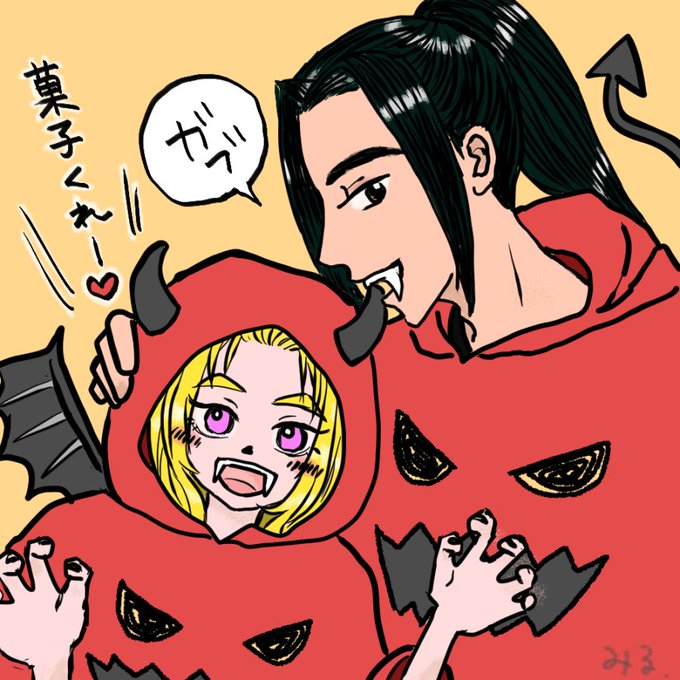 #尚六ワンドロ・ワンライ お題『ハロウィン・いたずら』🎃 時間 2.5時間 六太が蓬莱から持ってきたハロウィンパーカー(悪魔仕様)をおそろいで着てご機嫌なお二人です☺️❤️ いたずらってほどではないですが、尚隆は六太に気づかれないようにフードについてる角をガブガブしています☺️☺️☺️