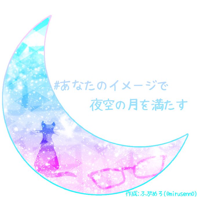 #あなたのイメージで夜空の月を満たす 穹咲さんイメージで描きました〜! カラーは水色〜ピンク、 モチーフは猫・チェック・メガネですが少し寂しかったのでうっすら狂猫という文字を入れさせていただいてます