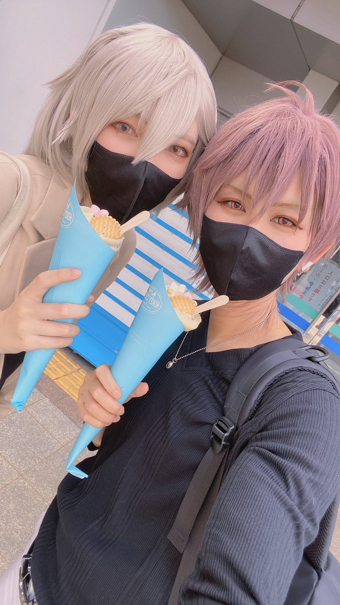最後に一緒に御堂さんとクレープ食べれてご満悦な巳波🥰 クレープ食べるの目標にしてたから達成出来ました☺️✌️ #コスカレ夏フェス2023