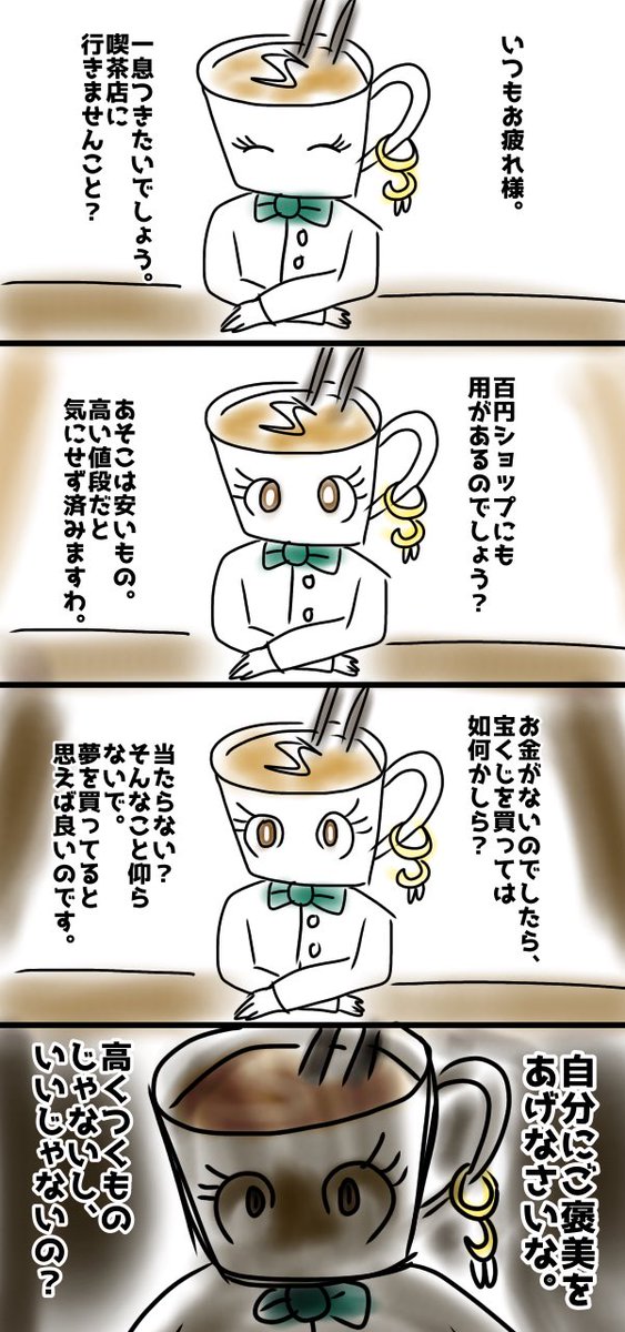 #きまぐれよその子ワンドロ資料 二日目と人外での参加を失礼します。単語から創った子「ラテ」を載せます 自分にご褒美をあげることは大事だと考えているが、目的はジワジワお金を出費させること 彼女の力でも削りきれないほどの大金持ちが弱点…の予定 よろしくお願いします ※用が済んだら消す予定 twitter.com/sutafes/status…