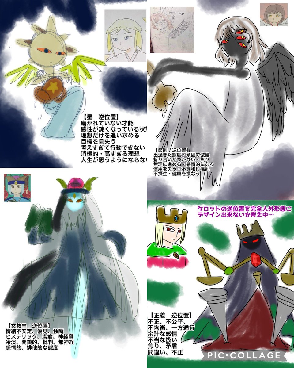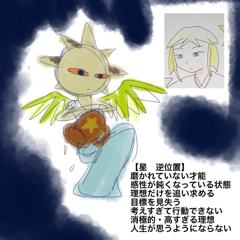 #8月になったのでフォロワーさんに自己紹介しようぜ 最近は未知の惑星へレスキューしに行ってます。先日ストーリーモードをクリアしました。 創作は海外風や銭湯にタロット等(何を載せるか浮かばなかったので、自宅の逆位置完全人外メンツを載せます) 時々タロットのリーディング練習をしています