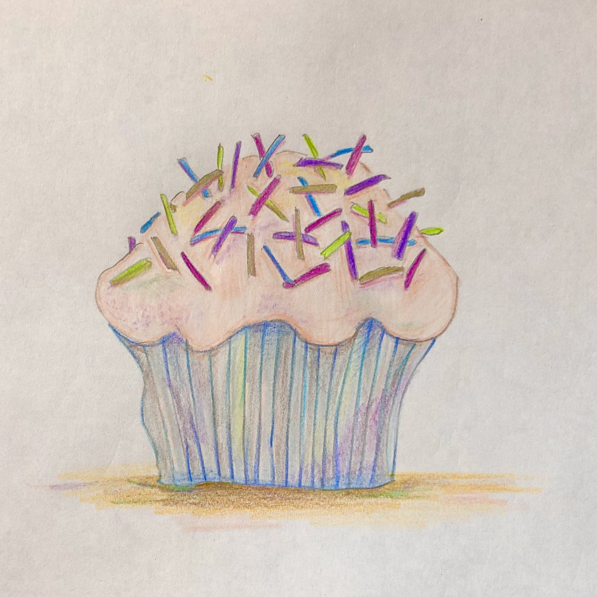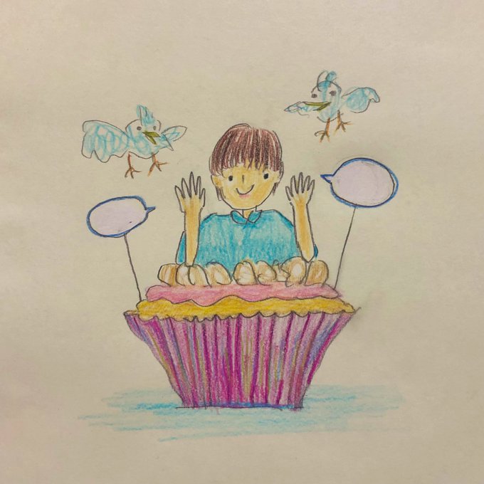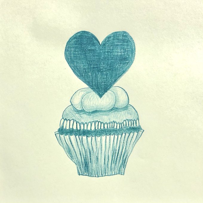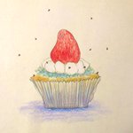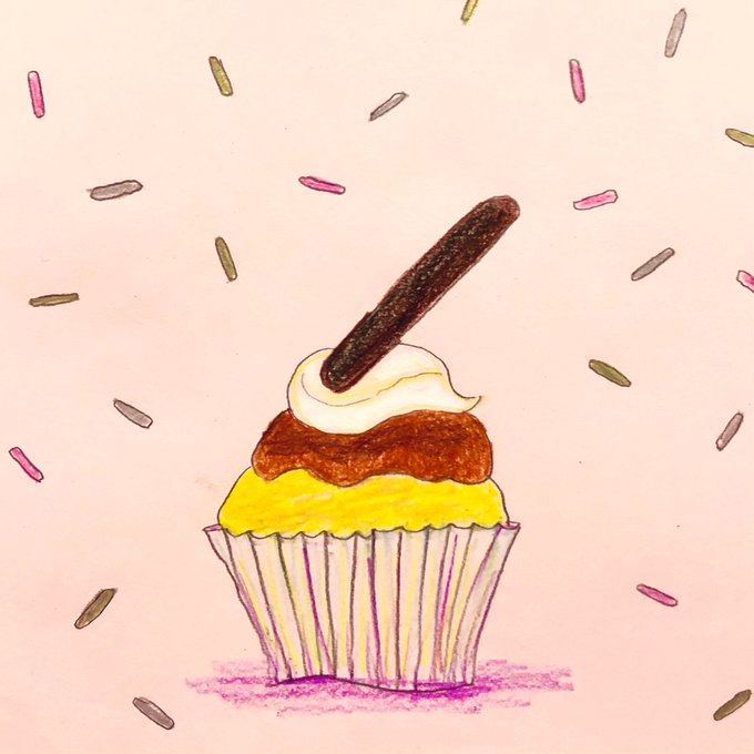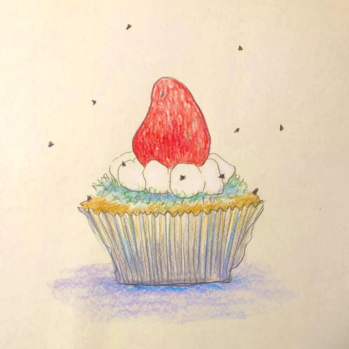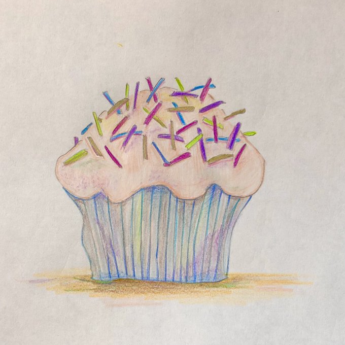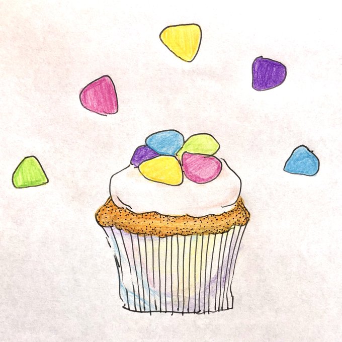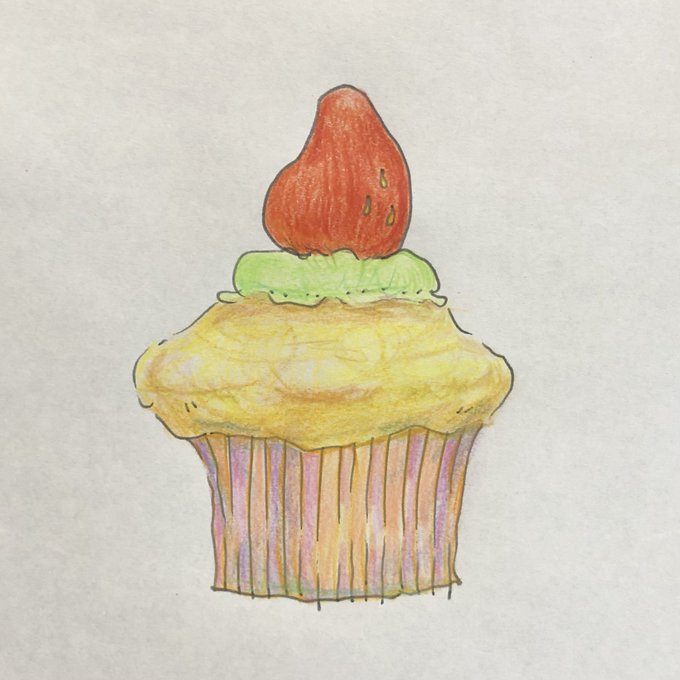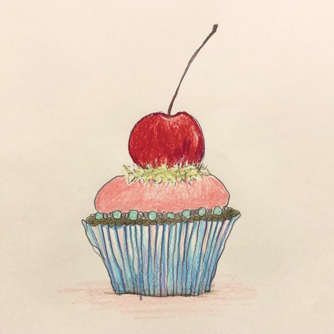 today's cupcake 【つぶやきカップケーキ】 まだまだ知らない機能も多いですが、これからもコツコツ続けていきたい!!🧁 #カップケーキ #イラスト #色鉛筆 #私の絵柄が好みって人にフォローされたい #Twitter初心者